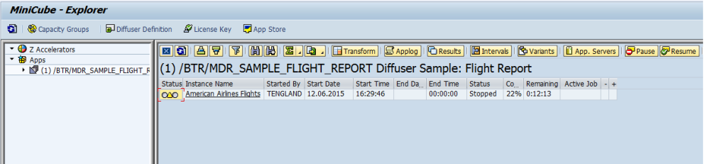 It is possible to Pause (or Stop) a program instance using this option. By selecting this option after selecting a program instance, Diffuser tells the currently executing jobs to no-longer process any more intervals after it completes the processing of the current intervals. The status of the Instance, and unprocessed intervals changes to “Stopped”. You will need to click Refresh to update the status. This is a powerful option that is used typically when a Diffuser program needs to be stopped temporarily due to the need to free up batch resources, or stopped permanently if the report run is no longer required. When the instance is paused, the Diffuser framework will not immediately stop all jobs that are currently running. It will instead prevent any new intervals from being started. The more intervals there are the more control over the execution of the instance an administrator will have.