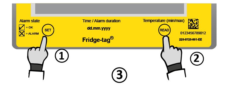 Hinweis: Änderungen der Uhrzeit oder des Datums haben keinen Einfluss auf die Alarmaufzeichnungen. Es kann nur das Datum, die Uhrzeit und die Temperatureinheit eingestellt werden (Werkseinstellung). Sobald das Gerät aktiviert ist, kann man es nicht mehr stoppen. Die Anzahl Änderungen an einem Tag ist unbegrenzt. Ab dem Tag, an dem eine Änderung gemacht wurde, sind die Einstellungsmöglichkeiten des Fridge-tag ab Mitternacht für 24 Stunden blockiert. Wenn Änderungen am 15.9. vorgenommen wurden, ist das Gerät von 00:01 Uhr am 16.9. bis 00.01 Uhr am 17.9. blockiert. Dies ist eine Sicherheitsfunktion.