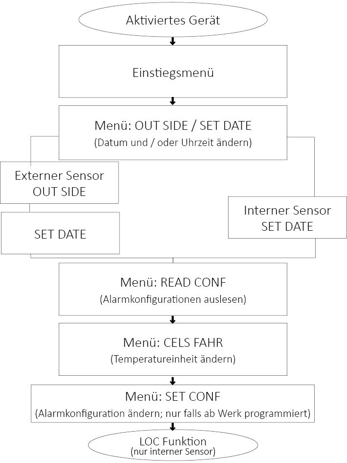 Hinweis: Wenn Sie durch das Menü blättern und am Schluss die Anzeige der Messfunktion erreichen, müssen Sie wieder am Anfang mittels Einstiegsmenü beginnen.