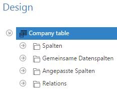 In dieser Gruppe befinden sich Steuerelemente, um die Relationen zu konfigurieren, welche in Berichten für Datensätze dieser Datentabelle benutzt werden, um auf zu den Datensätzen in Relation stehende Ziel- Datensätze zuzugreifen.