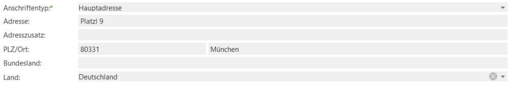Gruppe von Eingabefeldern, welche adressrelevant sind (Adresszeilen, PLZ, Ort, Bundesland und Land). Weisen Sie den einzelnen Feldern passende Datenspalten zu.