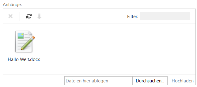 Dieses Steuerelement ermöglicht es, Anhänge zu dem angezeigten Datensatz hinzuzufügen, diese zu öffnen, herunterzuladen oder sie zu entfernen.