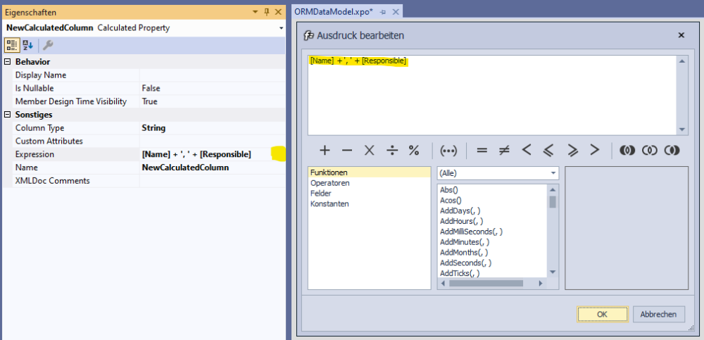 Die Berechnungsformel wird als Formel angegeben. Es können alle Gedys CXM-Funktionen einschließlich eventueller Erweiterungen in Projekten verwendet werden, sofern dort nicht explizit Einschränkungen angegeben sind.