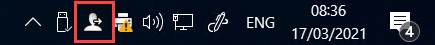The application is also accessible with an icon on the Taskbar. Right-clicking the icon opens a pop-up window.