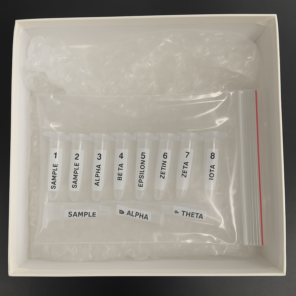- Put the test tubes in a cardboard box and a Ziplock bag, freeze, store at -80°C, and ship on dry ice. Clearly label each tube with numbers (from 1 to X), and a short name (at most, 6-8 printed alphanumeric characters), and send us the DriverMap AIR Sample Submission Form with the sample names.
