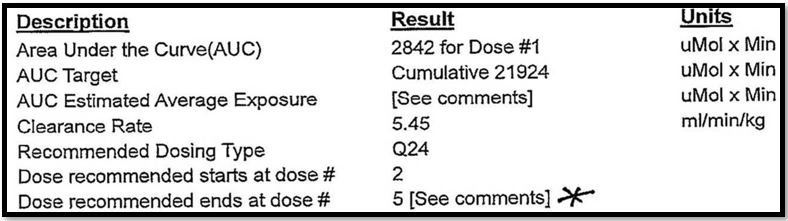 A common example of this situation occurs in the use of busulfan. When pharmacokinetic (pK) testing is performed, the ordered busulfan dose can be calculated from either the AUC dose or daily AUC. If an AUC dose is documented, this can be multiplied by the number of ordered doses in order to calculate the ordered busulfan dose. When a daily AUC is documented, this can be multiplied by the number of days in order to calculate the ordered busulfan dose. See the example below for more information.