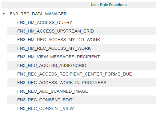 A user’s role is assigned to them by the Primary Data Manager/Primary Coordinator They display under the User Role Functions header.