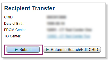 - If the user is at the new center, i.e. the center the recipient is transferring TO, then the FROM Center and TO center information will already be completed.