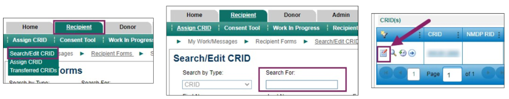 - Assign CRID > Search/Edit CRID > Search for CRID number > Edit Icon