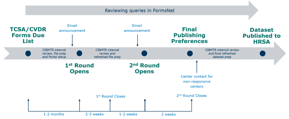 - Winter (December): CIBMTR Final Review (validation assessment, leadership review, HRSA posting)
