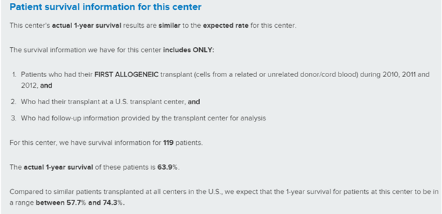 Public reports are text-based single-center descriptions of outcome vs. “expected” outcome. Reports are posted online in January and accessible through HRSA and NMDP.