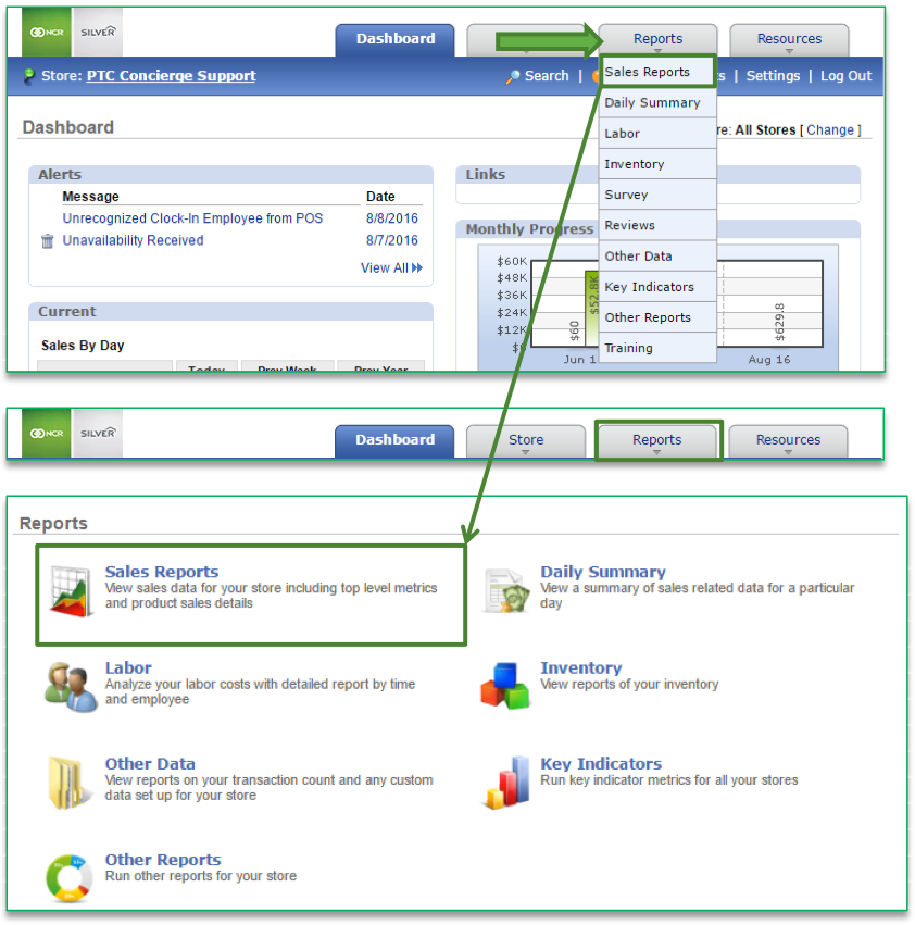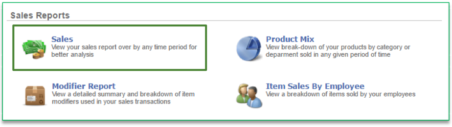 To access the By Period Sales report you will need to navigate to the Reports module and click Sales Reports.