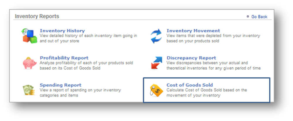 STEP 2: From the Inventory Reports screen, click Cost of Goods Sold.