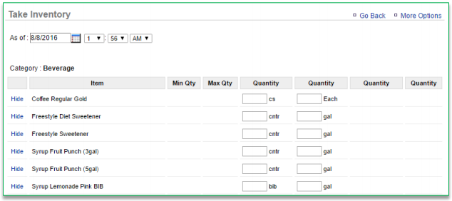 - It’s important the date you enter reflects the date that you actually took inventory of ingredients/goods (even if it is not the date that you are entering the totals into the system)