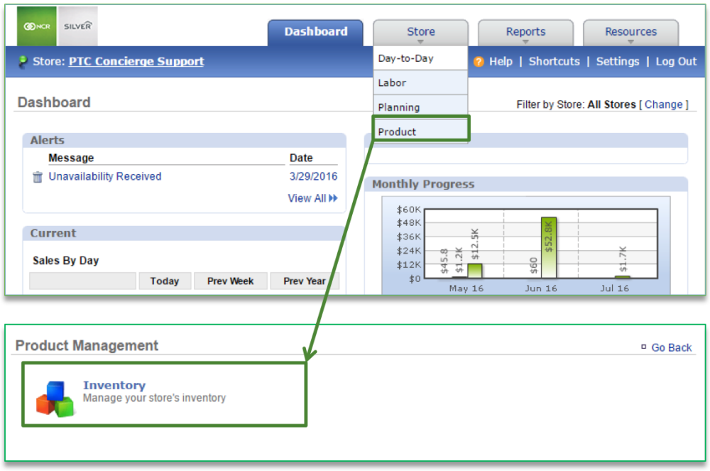 To export inventory you will need to navigate to the Product Management module and click Inventory.