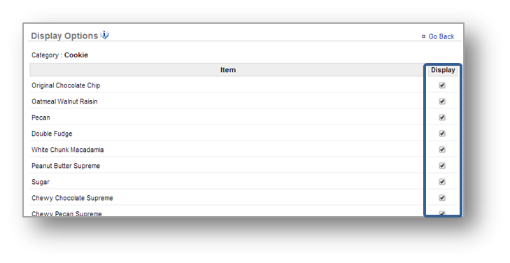 If you choose to hide items from the Display Options screen, click the box to uncheck those items you wish to hide.