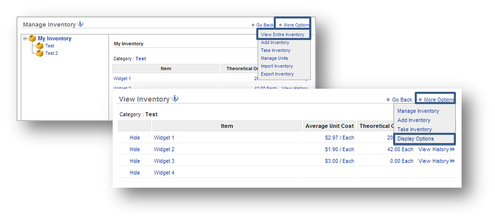 *If you choose to hide inventory via the Managing Inventory section, click More Options, and then View Entire Inventory. From this screen, click More Options, and then Display Options.