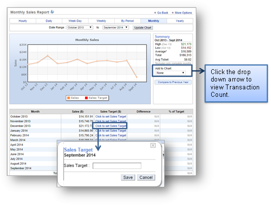 - Set a sales target. Click Click to set Sales Target to the right of any period to enter your target. Click Save when done.