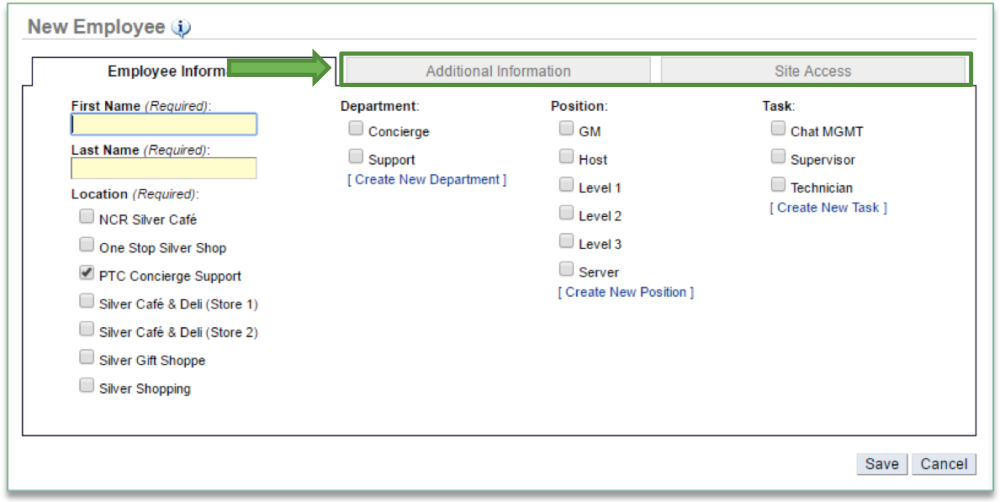 There are two additional tabs within the employee record (Additional Information and Site Access).