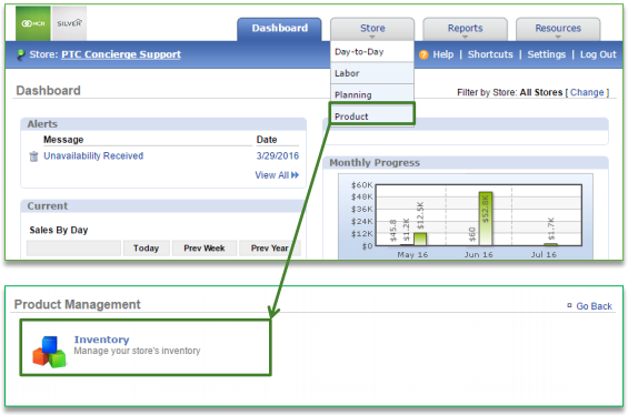 To create recipes you will need to navigate to the Product Management module and click Inventory.