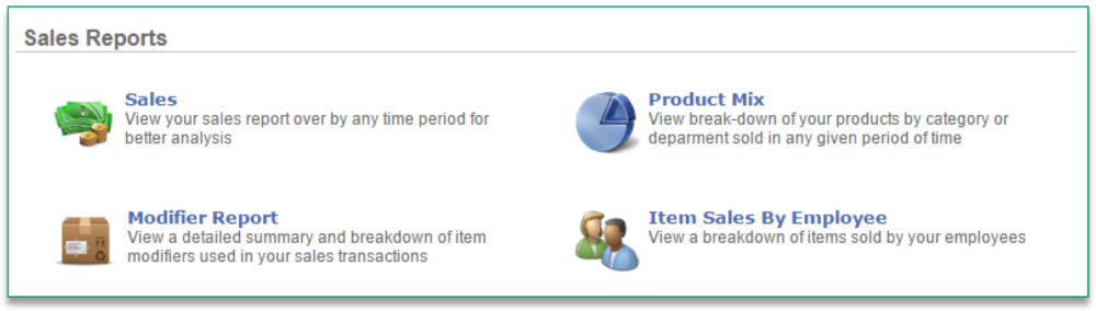 - Item Sales by Employee: Allows you to view a breakdown of items sold by your employees