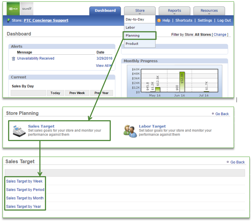 To set a sales goal you will need to navigate to the Store Planning module, click Sales Target and then select the target you wish to set.