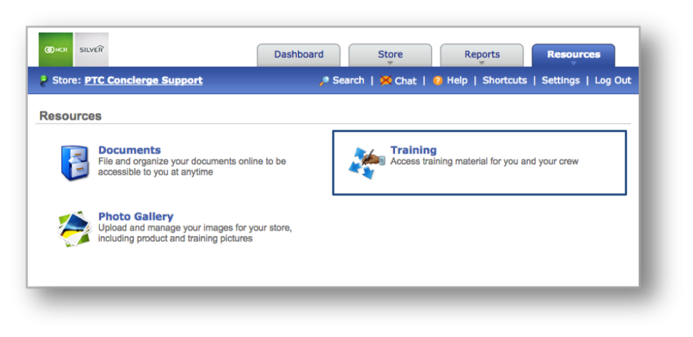 STEP 1: From your Dashboard view, mouse over the Resources tab and click Training.