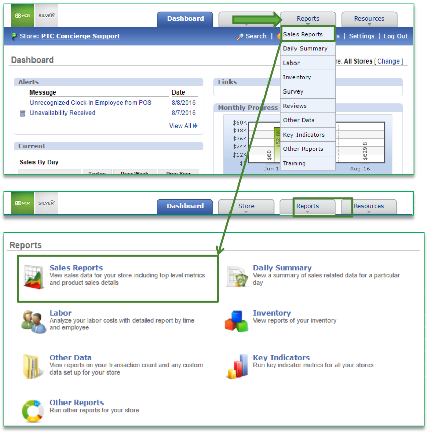 To access the Week Day Sales report you will need to navigate to the Reports module and click Sales Reports.