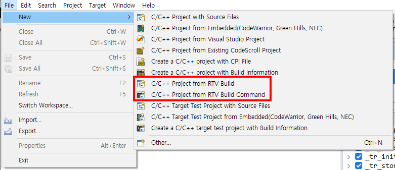 This chapter describes how to create an RTV project by using pre-extracted source file build information(using the CT RTV Server Utility) in the target environment, or extracting information at the same time as building the target source file.