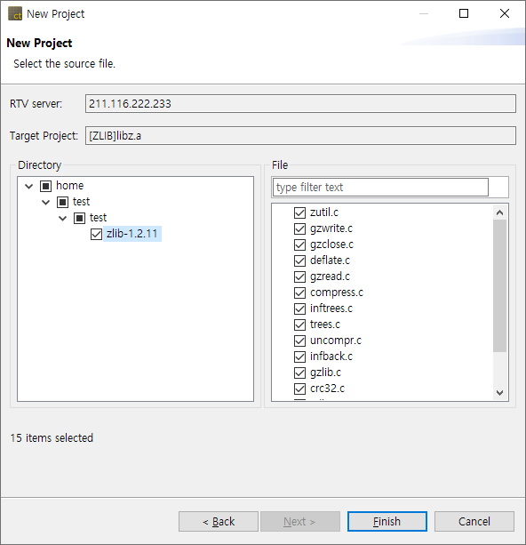 - When creating the RTV project, select the source file to be included and click the [Finish] button to create the project.