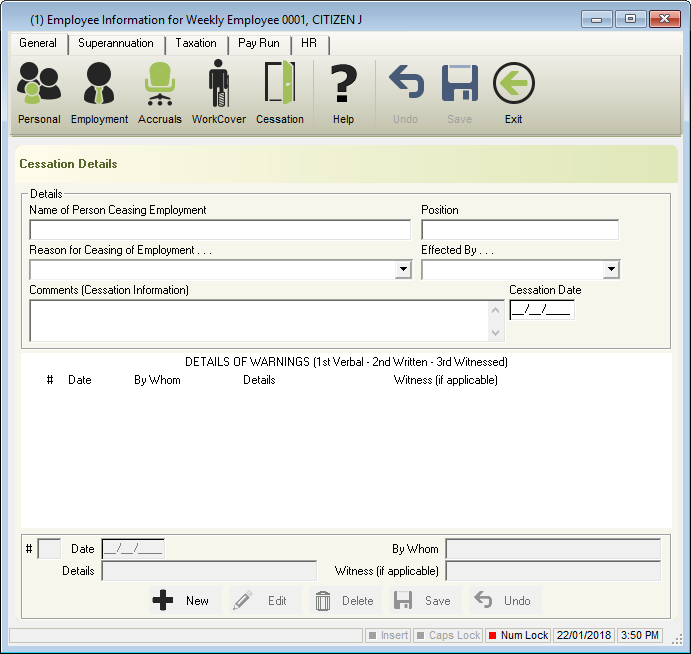 - Name of Person ceasing Employment: Person who informed the employee that their employment is to be terminated.