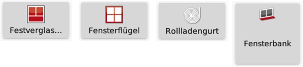 Um dein bereits bestehendes Fensterelement zu ergänzen, gibt es die Raumelemente „Festverglasung, Fensterflügel, Rolladengurt und Fensterbank“.