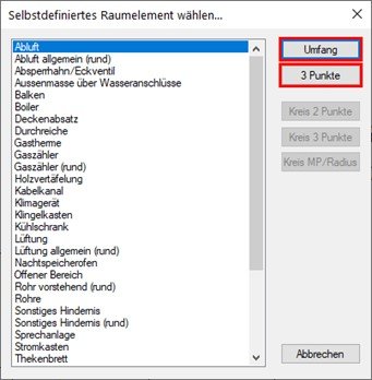 Jetzt hast du die Wahl das Raumelement über „Umfang“ oder über „3 Punkte“ einzumessen.