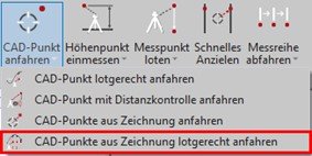 - Wähle aus dem Untermenü des Befehls „CAD-Punkte anfahren“ den Befehl „CAD-Punkte aus Zeichnung lotgerecht anfahren“.