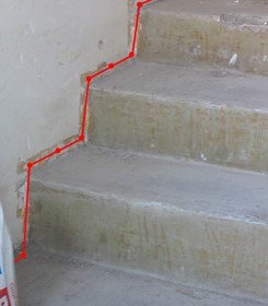 - Beim Stufenverlauf außen und innen musst du schauen, wie gerade die Wände sind.