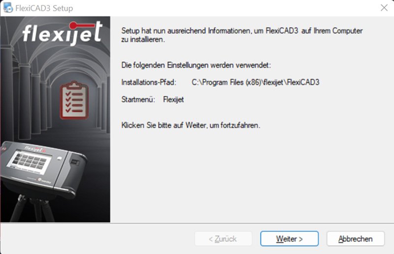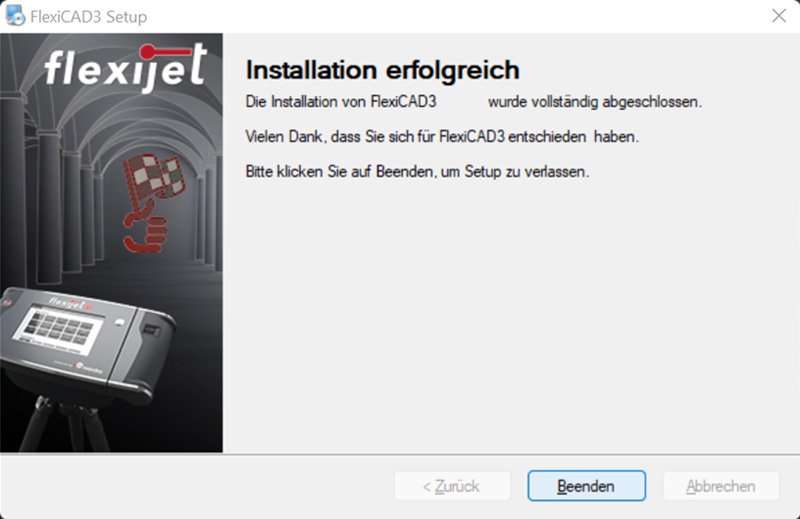 - Bestätige das Hinweisfenster mit „Weiter“. FlexiCAD wird installiert.