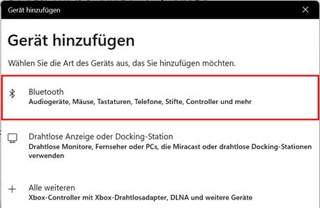 - Wähle in anschließenden Auswahl-Fenster die Option „Bluetooth“.