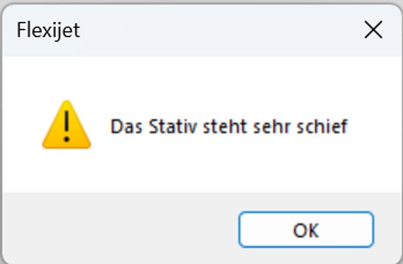 - Sollte das Stativ zu schief stehen erhältst du eine Warnmeldung.