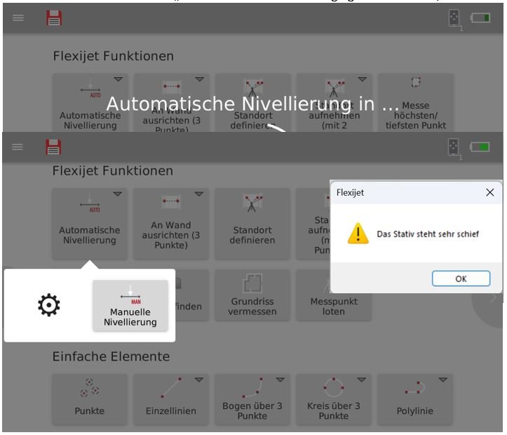- Tippe im Bereich „Flexijet Funktionen“ links auf den ersten Befehl „Automatische Nivellierung“.
