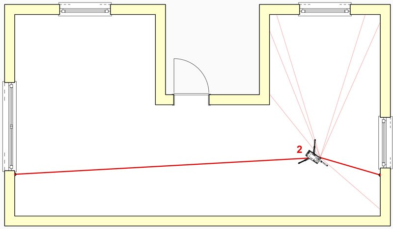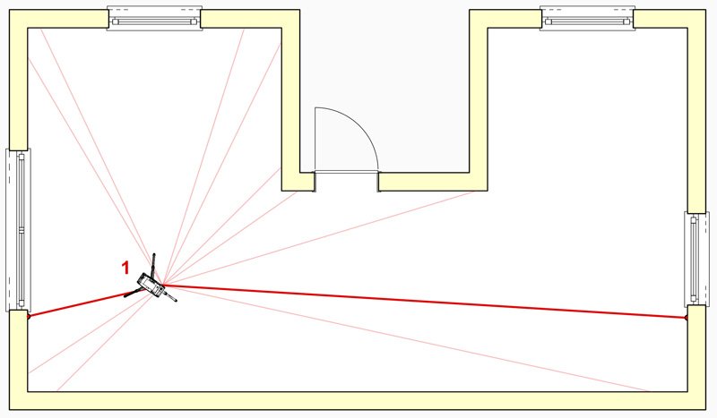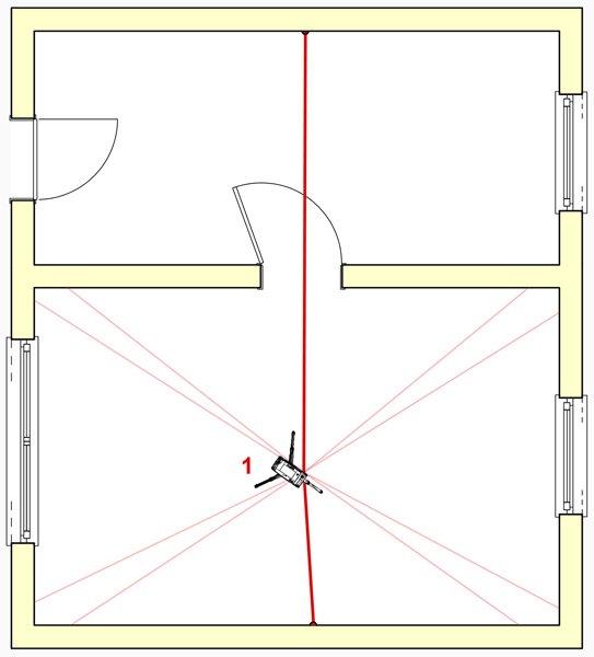 Der U-Förmige Raum soll komplett aufgemessen werden. Am Standort 1 nehme ich zwei Standortpunkte auf.