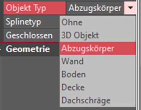 Dazu musst Du nur die Kontur auswählen und den Objekt Typ als “Abzugskörper” auswählen.