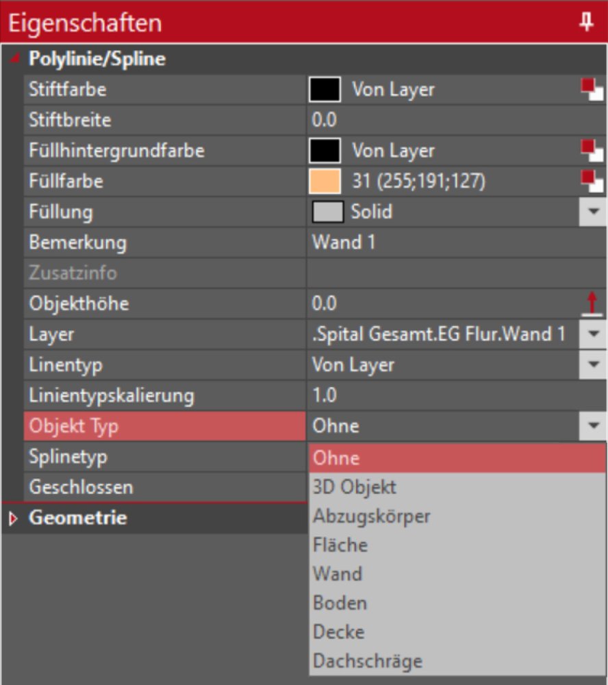 Dazu einfach eine geschlossene Polylinie anklicken und in den Eigenschaften den Typ ändern.