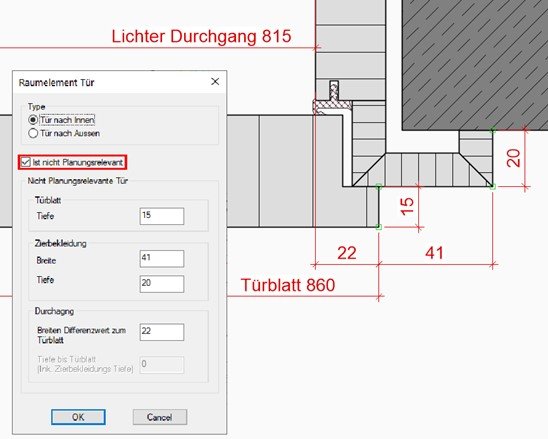 Die Einstellungen für „nicht planungsrelevante Türen“ nimmst du in FlexiCAD vor.