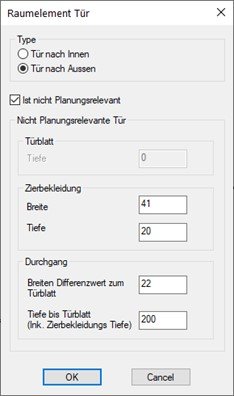 Diese Einstellungen gelten dann für alle weiteren nicht planungsrelevanten Türen.