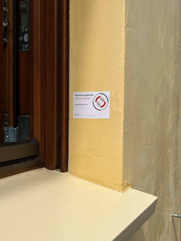 Nimm einen Messpunkt auf dem Boden vor dem Fenster.