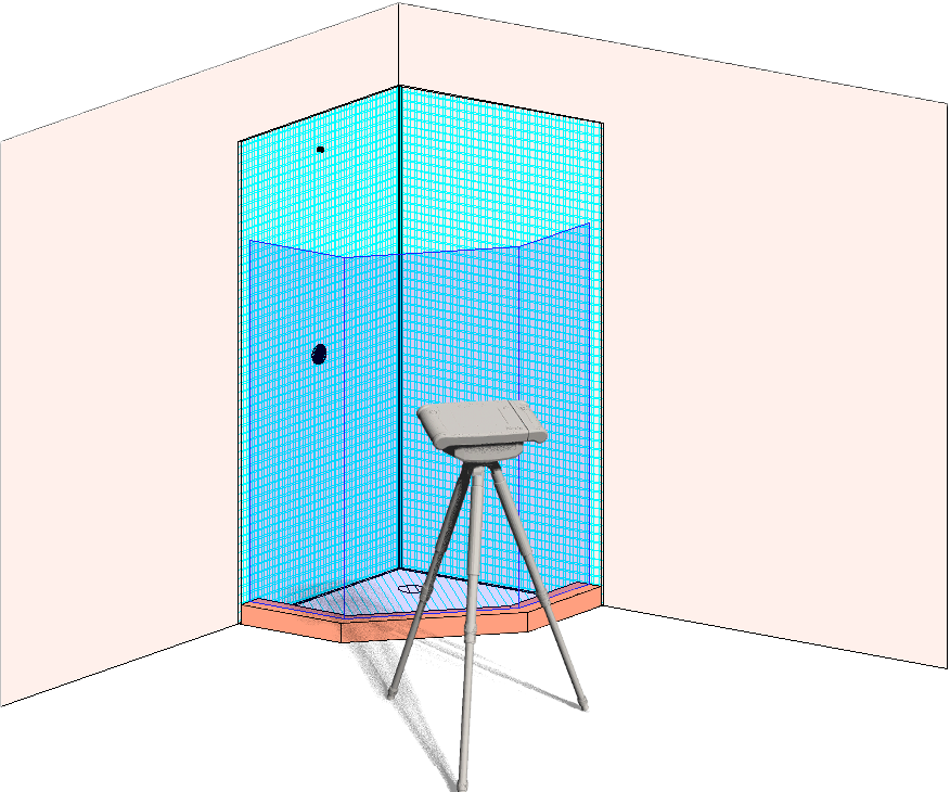 Die Aufgabenstellung in meinem Beispiel ist, das Einmessen einer Dusche mit Duschwanne und drei Glasfronten.