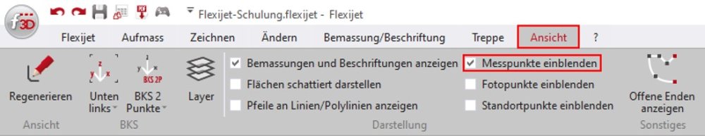 - Wähle in FlexiCAD die Option „Ansicht > Messpunkte einblenden“.
