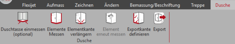 Jetzt ist das Flexijet und unsere Koordinatenachse für die Messzeichnung vorbereitet und wir können mit der Vermessung der Dusche beginnen. Dazu wechseln wir auf den Menüreiter „Dusche“.