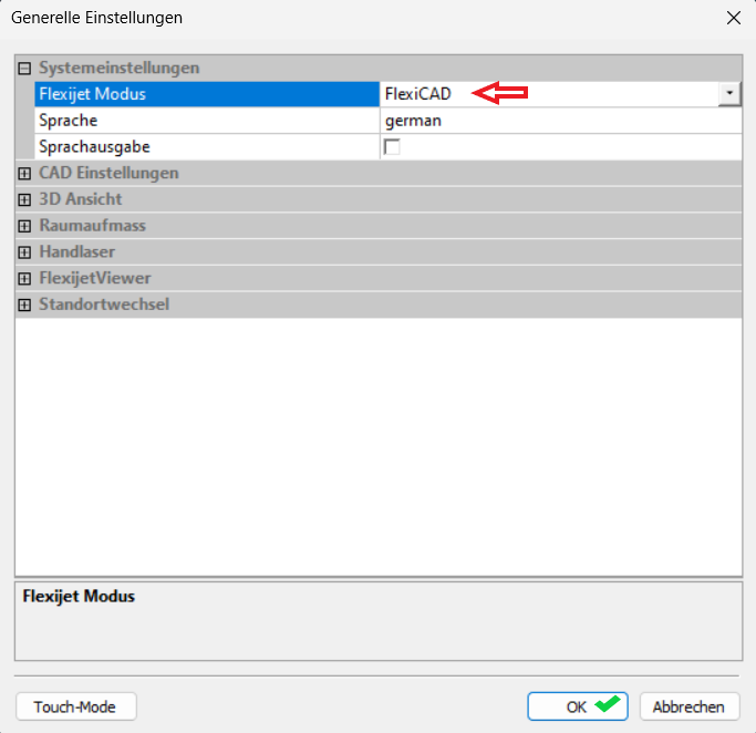 die Option „FlexiCAD“ aus und bestätigen die Auswahl mit „OK“.