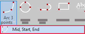 With ‘Mid, Start, End’, an arc is created by entering the midpoint, radius, start angle and end angle. The angles can also be entered by keyboard.